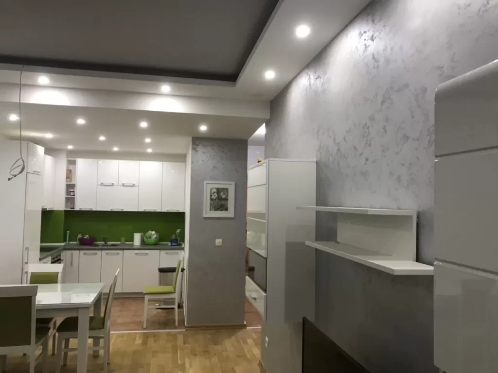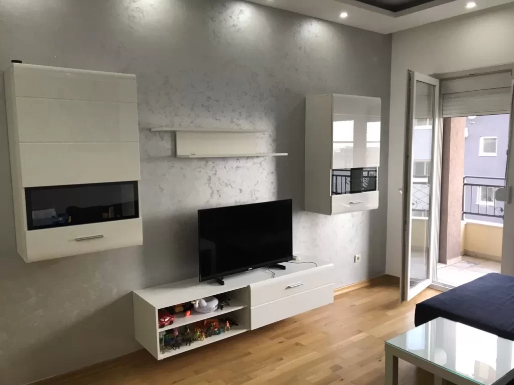 Układ mieszkania: przestronny salon połączony z jadalnią, sypialnia, łazienka i duży taras. Mieszkanie jest w pełni umeblowane i wyposażone i jest sprzedawane ze wszystkimi meblami. Z salonu można wyjść na balkon z widokiem na miasto i morze. Przed budynkiem znajduje się strzeżone miejsce parkingowe dla przyszłego właściciela.